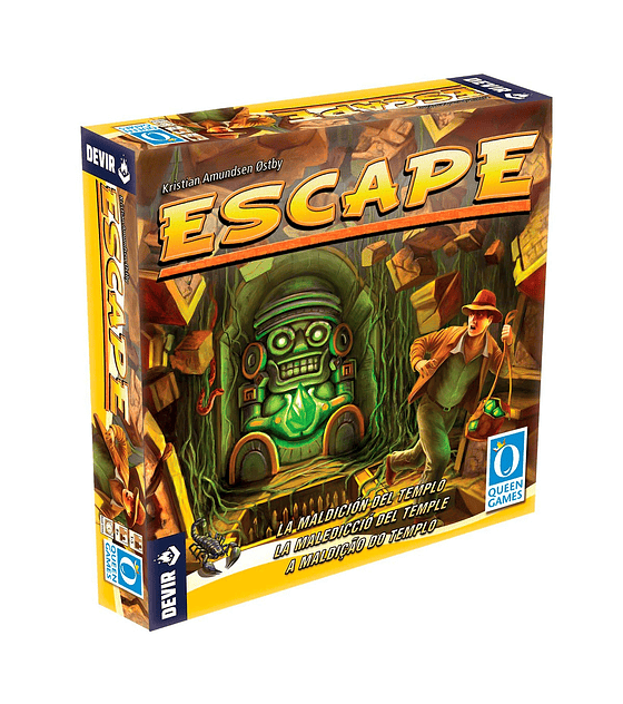 Diseñado por Kristian Amundsen Østby (uno de los autores de Revive) e ilustrado por Oliver Schlemmer (Fresco, Kingdom Builder), Escape es un juego cooperativo en tiempo real… ¡Donde no hay turnos ni rondas! Hasta 5 jugadores, a partir de 8 años, lanzarán dados y se moverán por el templo en busca de la salida y el uso de piedras mágicas.