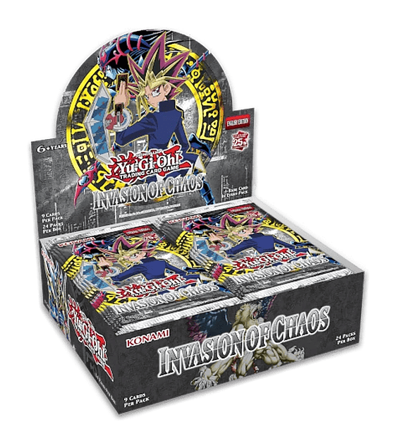 Invasion of Chaos desató una serie de poderosas cartas que recompensaban a los Duelistas por llenar sus Decks con monstruos de atributo LUZ y OSCURIDAD. El legendario Soldado del Brillo Negro - Enviado del Principio y el Dragón Emperador del Caos - Enviado del Fin dominaron los duelos junto al Mago Oscuro del Caos que recupera cartas de hechizos, ¡incluida la fenomenal Fusión Dimensional!